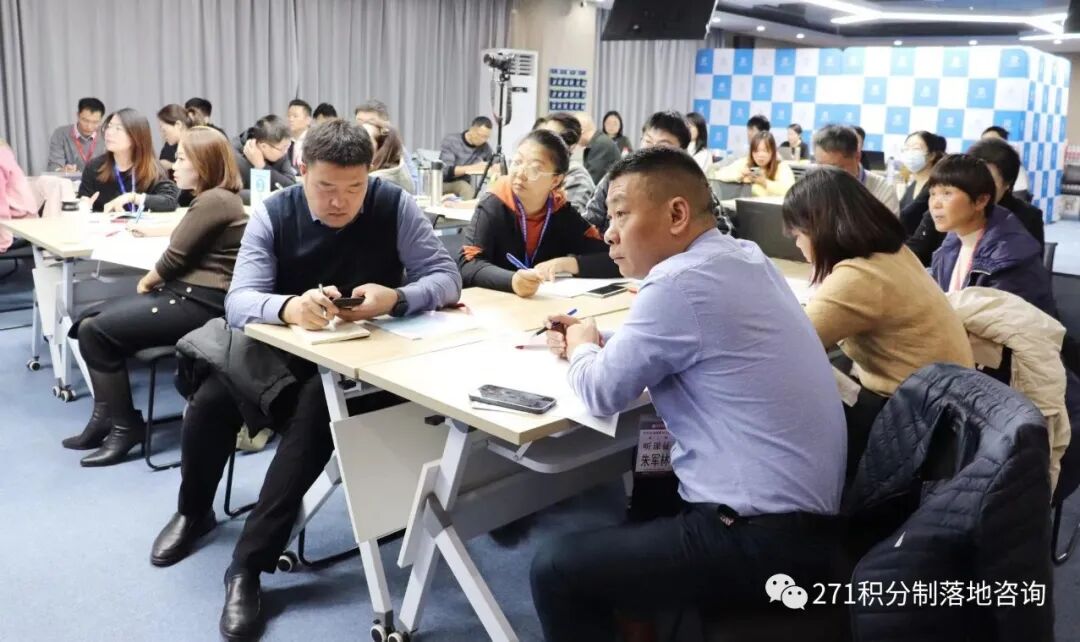 紧接着,贾老师毫无保留的为现场学员分享了独创的《积分落地108机制》中的一系列管理机制及实用工具,如合理化建议奖励机制:用奖分的形式引导员工每个月给公司提一条建议、意见或有价值的信息,参与+30分,被采纳+50-200分,特殊建议还可以给予现金或物质奖励,通过此机制使公司信息顺畅,培养全员操心的氛围。还有很多非常实用的管理机制,如积分小惊喜机制、加班排名机制,内部介绍机制以及能为公司最大限度提升人效的复合型人才培养机制等等,都获得了全体学员的纷纷点赞和一致认可。